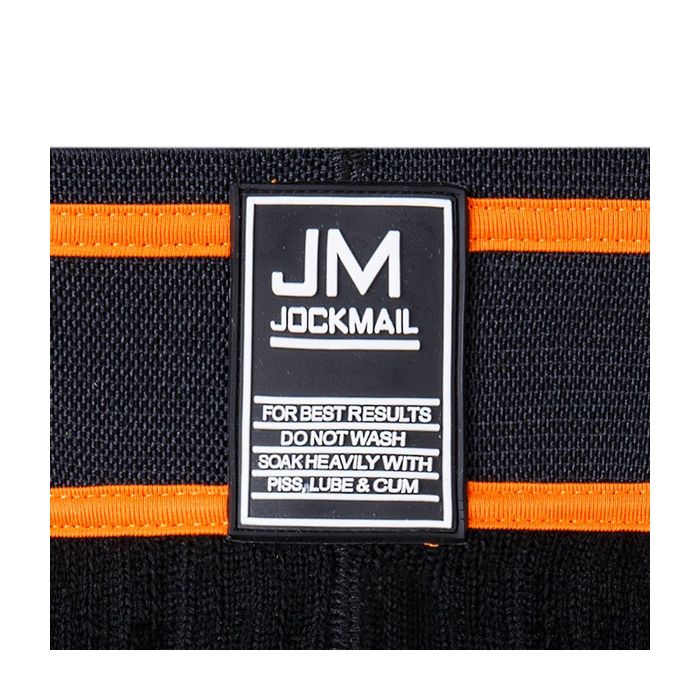 Een sportieve jockstrap met een wasvoorschrift op de voorkant die je niet vaak op ondermode tegen zult komen. De JM226 Double Butts Wide Bar Jock - Oranje is een zwarte jockstrap met oranje accenten. Op de voorkant van de extra brede tailleband is de tekst "For best results do not wash, soak heavily with piss, lube & cum" af te lezen. Hiermee geef jij jouw fetish aan, maar je kunt nog makkelijk een ongemakkelijke situatie omtoveren in een grapje.