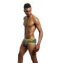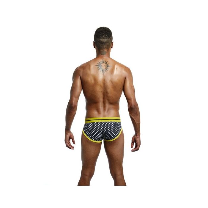De Jockmail JM315 Americana Slip - Grijs heeft een sportieve Amerikaanse look door het sterren patroon en de klassieke afwerking met soepele zomen. De elastische tailleband zit lekker laag om de heupen en heeft een luxe Jacquard geweven kwaliteit met geborduurd Jockmail logo. De slip is super comfortabel door het gebruik van heerlijk zacht aanvoelend en luchtig katoen dat bovendien zweet resistent is!
