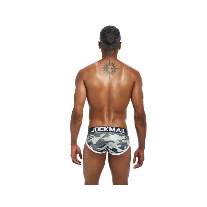 Het klinkt misschien tegenstrijdig maar in de JM321 Camouflage Slip - Zwart zul jij zeker gezien worden! Deze slip van het merk Jockmail zit namelijk lekker strak en laag zodat jouw mannelijke figuur goed te zien is en de camouflage print zorgt voor een stoere look. Het zachte katoen is van hoge kwaliteit en gecombineerd met Spandex voor een perfect passende en super comfortabele slip. Het katoen is bovendien lekker luchtig en zweet resistent.