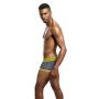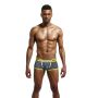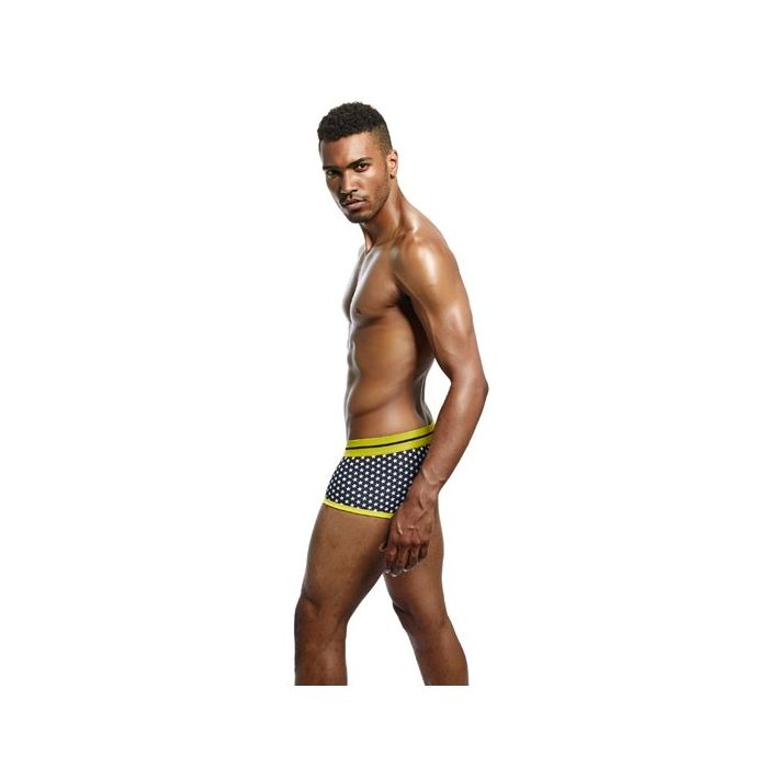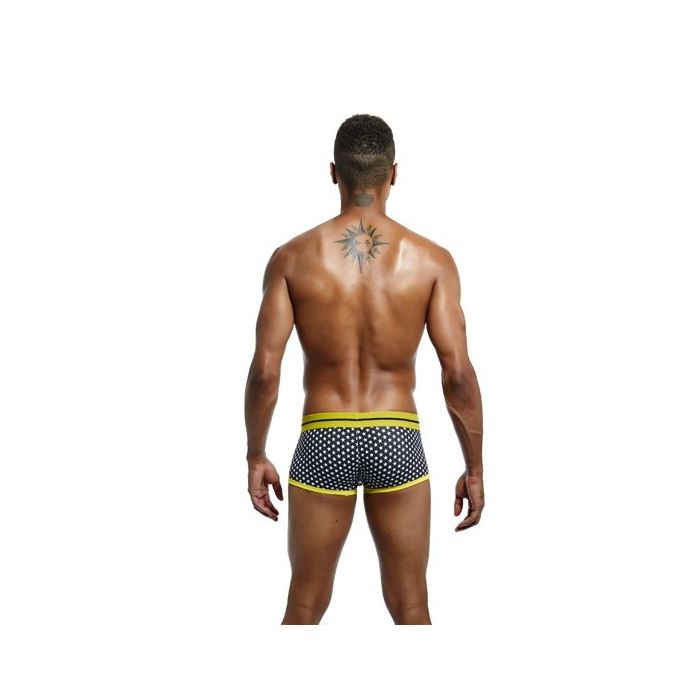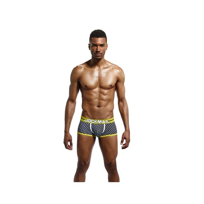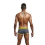 De Jockmail JM407 Americana Boxer - Grijs heeft een sportieve Amerikaanse look door het sterren patroon en de klassieke afwerking met soepele zomen. De Jacquard geweven tailleband zit lekker laag om de heupen en is afgewerkt met een stijlvolle lijn rondom en het Jockmail logo voorop. Het zachte katoen is van hoge kwaliteit en is gemixt met Spandex voor een geweldig hoog draagcomfort en een perfecte nauwsluitende pasvorm. De sportieve boxershort is geschikt om in te sporten door het luchtige en zweet bestendige materiaal.