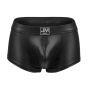Deze Jockmail Party Boxer - Zwart is gemaakt van hoogwaardig PU-leer en heeft een stoere uitstraling in mat zwart. De boxer heeft een reliëf dat lijkt op echt leer en een smalle, voorgevormde pouch voor extra comfort en ondersteuning. De boxer is perfect voor een avondje uit of een feestje, en geeft je een zelfverzekerde uitstraling. De Jockmail Party Boxer - Zwart is ontworpen met oog voor detail en comfort. De elastische tailleband zorgt ervoor dat de boxer goed op zijn plek blijft zitten, terwijl de zachte stof zorgt voor een aangename pasvorm. Of je nu op zoek bent naar een stoere look of gewoon iets nieuws wilt proberen, deze boxer is een geweldige toevoeging aan je ondergoedcollectie. Met de Jockmail Party Boxer - Zwart ben je klaar voor elke gelegenheid!