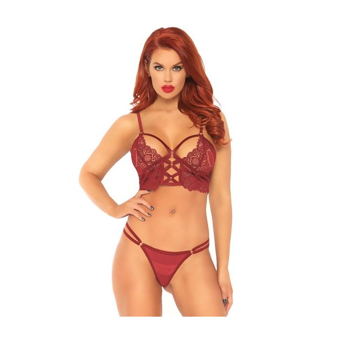 Wees sexy, wees verleidelijk in de Kanten Bralette met String - Bordeaux. Ook prachtig is de Kanten Bralette met String - Paars!
