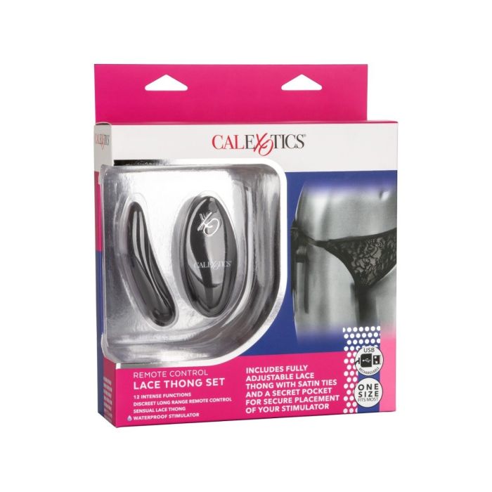 Hebben jullie regelmatig een date night op de planning staan en ben je op zoek naar een manier om deze nog iets spannender te maken? Deze kanten string met vibrerende bullet van Calexotics zorgt ervoor dat jullie hele avond verandert in een lang, uitgerekt voorspel. De kanten string is licht doorschijnend, super sexy en beschikt over een verborgen vakje voor de vibrerende bullet. Deze bullet ligt precies tegen de clitoris aan, waardoor de vibraties voor heerlijk, intens genot zorgen. De vibrerende bullet beschikt over maar liefst 12 verschillende standen en kan bediend worden met bijgeleverde draadloze afstandsbediening. Dit kun je natuurlijk zelf doen, maar het is nog veel leuker om de controle aan je partner te geven. De afstandsbediening heeft een bereik van 10 meter en de bullet is volledig waterproof.
