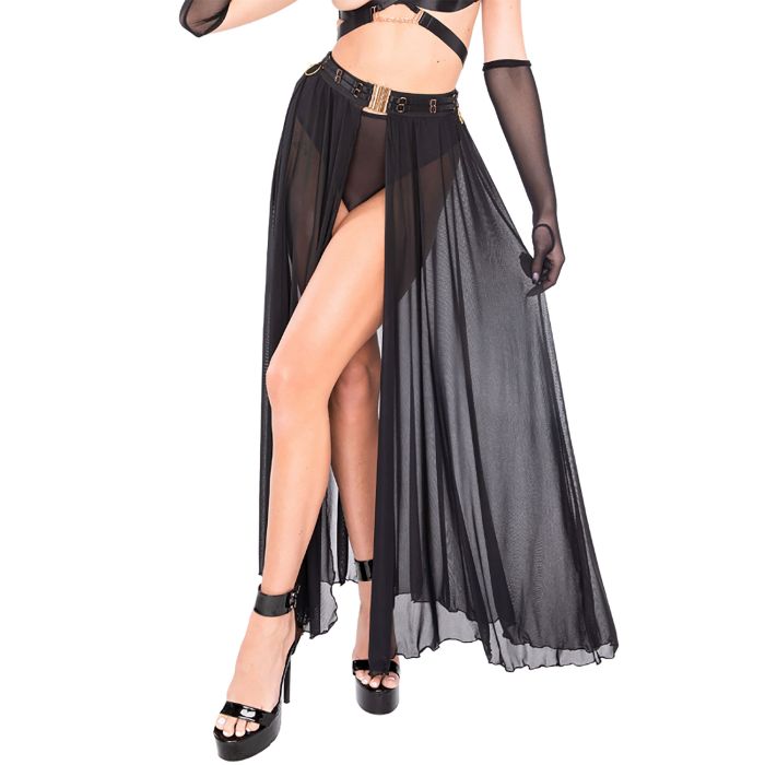De Kinky Diva Goddess Rok is een absolute must-have voor elke vrouw die haar sensuele kant wil laten zien. Deze stijlvolle lange mesh rok is ontworpen met een verleidelijke opening aan de voorkant of achterkant, waardoor je de mogelijkheid hebt om je prachtige benen te tonen of je rondingen te accentueren. Het is de perfecte combinatie van elegantie en verleiding. Gemaakt van hoogwaardige mesh stof, geeft deze rok een nieuwe betekenis aan het begrip wijd uitlopend silhouet. Het materiaal valt soepel om je lichaam heen en zorgt voor een sexy en vrouwelijke uitstraling. De tailleband is versierd met bondage-details, wat een extra vleugje spanning en speelsheid toevoegt aan het ontwerp. Deze veelzijdige rok is geschikt voor verschillende gelegenheden, van feestjes en festivals tot clubavonden en intieme momenten. Of je nu wilt schitteren op de dansvloer of je partner wilt verleiden in de slaapkamer, deze rok is de perfecte keuze. Het is een combinatie van erotiek en mode, waarmee je jouw erotische en modieuze smaak kunt omarmen. Met de Kinky Diva Goddess Rok ben je klaar om de show te stelen en je zelfvertrouwen te laten stralen.