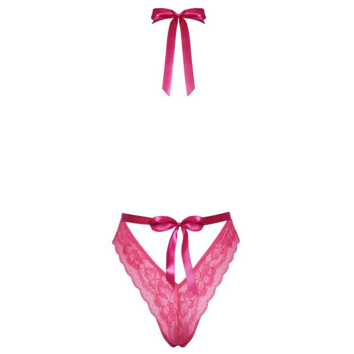 Deze exclusieve body is gemaakt van fijn roze kant en heeft een brutale en speelse uitstraling. Het zachte en elastische materiaal zorgt voor optimaal draagcomfort, terwijl de verleidelijke styling met een grote uitsnede aan de voorkant vanaf de hals tot aan de taille zorgt voor een sensuele look.