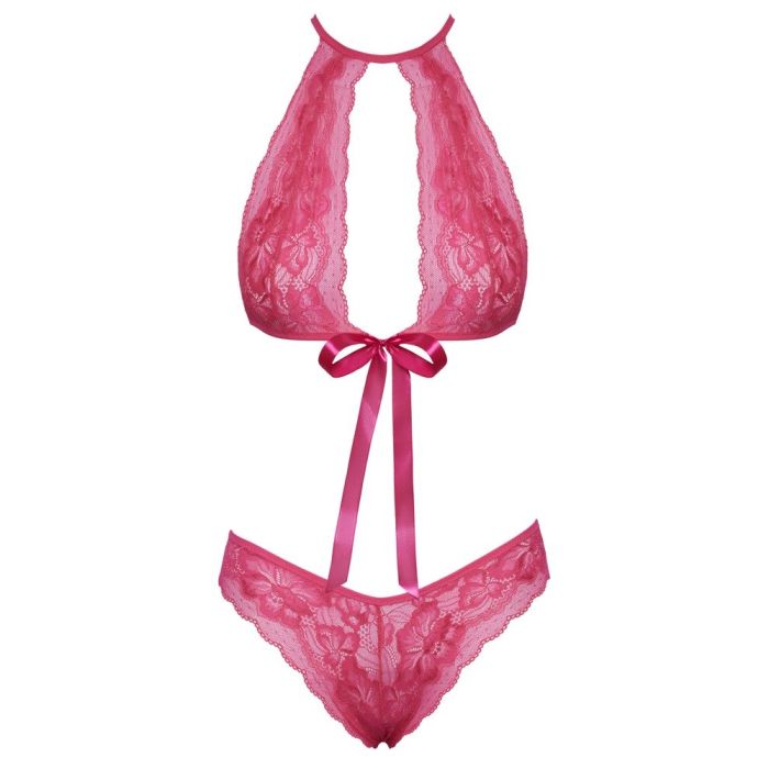 Gemaakt van fijn roze kant, is dit setje niet alleen prachtig om te zien, maar ook zeer comfortabel om te dragen dankzij het zachte en elastische materiaal.