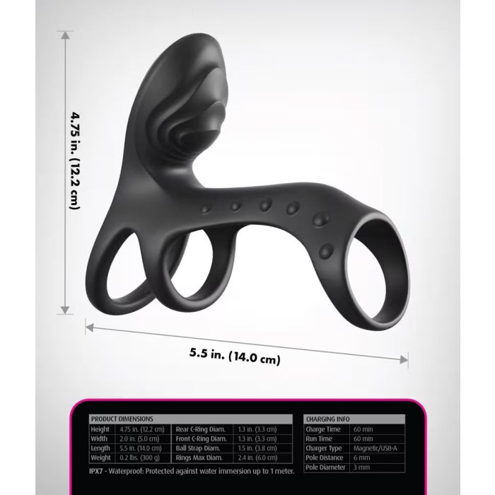 Met maar liefst 7 vibratiestanden en 3 snelheden, allemaal eenvoudig te bedienen met een druk op de knop, is de Ultimate Couples Cage Pro perfect voor elke stemming. Of je nu in bad of onder de douche bent, dit waterproof speeltje laat je niet in de steek. De praktische knopvergrendeling maakt discreet transport en opbergen een fluitje van een cent. Gemaakt van zachte, elastische siliconen, passen de manchet en de ringen zich perfect aan, terwijl de hoge flexibiliteit ervoor zorgt dat de krachtige vibraties elke beweging intensief worden ervaren.
