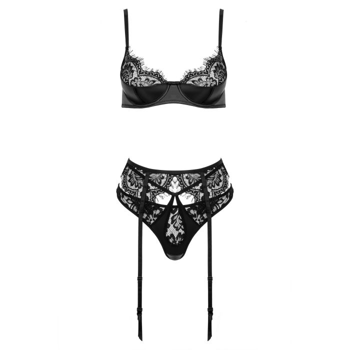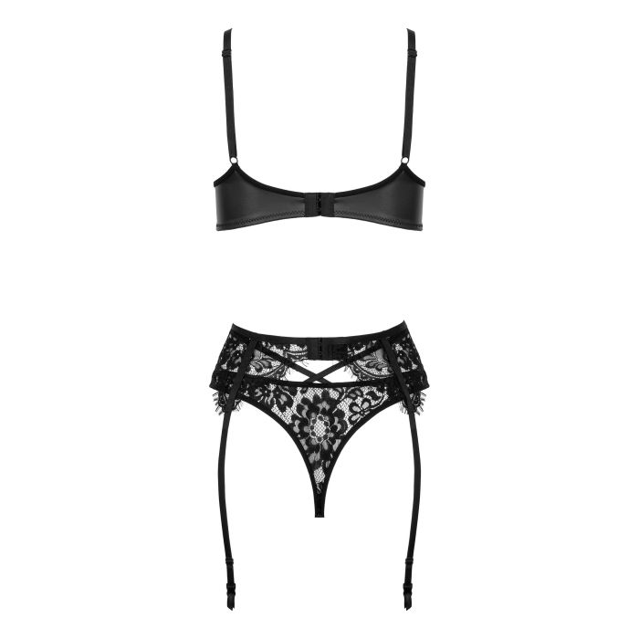 Ontdek de verleidelijke charme van de 3-delige lingerie set van Kotek, ontworpen voor de moderne vrouw die houdt van een vleugje spanning in haar ondermode. Deze set, vervaardigd uit hoogwaardig wetlook materiaal, biedt niet alleen een sensuele uitstraling, maar voelt ook heerlijk aan op de huid. De jarretel, bh en string zijn perfect op elkaar afgestemd en accentueren de vrouwelijke vormen op een elegante manier. Het prachtige kantwerk voegt een extra dimensie toe aan het geheel, waardoor je je zelfverzekerd en aantrekkelijk voelt, of je nu deze set draagt voor een speciale gelegenheid of gewoon voor jezelf.