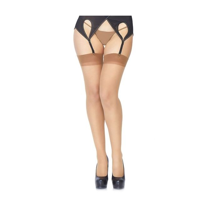 Deze elegante kousen van Leg Avenue laten je benen er heerlijk zacht uitzien. Deze kousen zijn gemaakt van stevig, maar zacht nylon dat soepel mee rekt. Bovenaan de kousen zijn brede banden aangebracht ter versteviging en ook de tenen zijn verstevigd. Combineer deze kousen met een spannend jarretel setje en daarover een stijlvolle outfit en je bent klaar om de wereld op te eten.