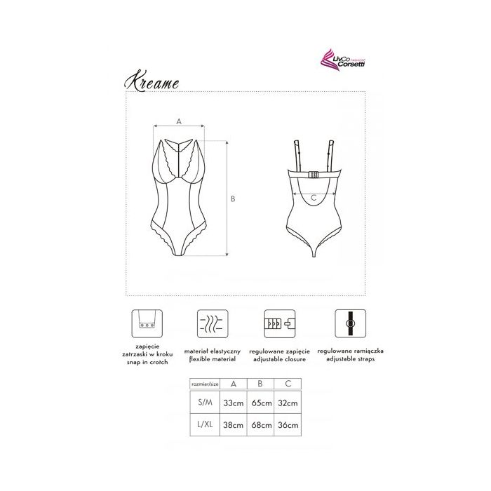 De Kreame Body - Roze is een charmante body uit de Sugar Corall seire van Livco Corsettie. Deze prachtige body van Livco Corsetti is gemaakt van transparant tule en doorzichtig kant van hoge kwaliteit. Het lijfje is gemaakt van tule met een schattig polka-dot patroon. De cups, de randen van de beenuitsparingen en het choker detail zijn gemaakt van sierlijk kant met grafisch bloemen kant.