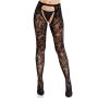Kruisloze Kanten Panty met Rozenpatroon - Zwart