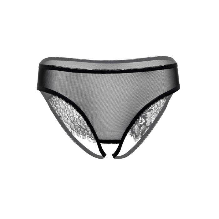 Hou jij van klassiek en simpel met een ondeugende touch? Ga dan voor deze Kruisloze Slip Nicolette - Zwart van Daring Intimates. Deze slip heeft een uitdagend open kruisje waardoor jij heel toegankelijk zal zijn voor je partner. De transparante voorkant laat niks aan de verbeelding over en de gehele achterkant is open waardoor jouw prachtige billen gewoon zichtbaar zijn. De slip is beschikbaar in twee maten en heeft een perfecte pasvorm.