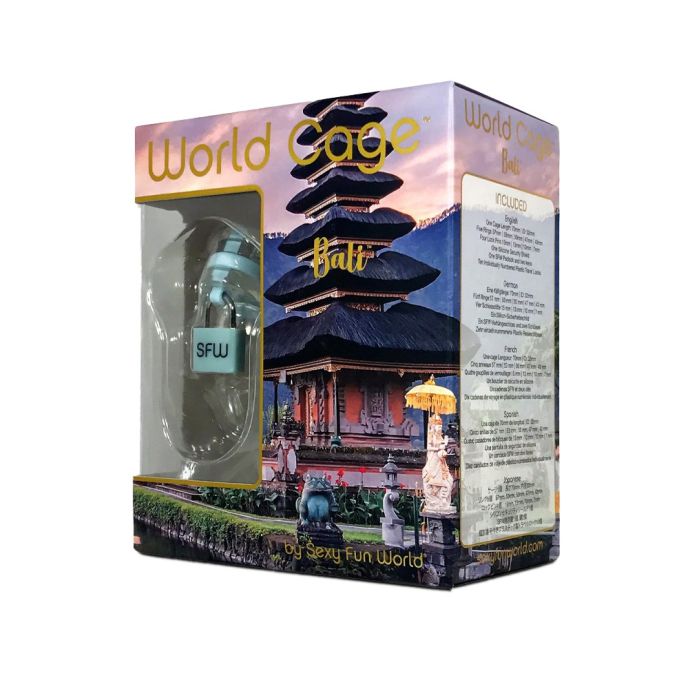 De Kuisheidskooi set Bali van World Cage is gemaakt van polycarbonaat. De kooi is eenvoudig te dragen en zo ontworpen dat elke man hem past. Bij de peniskooi worden 5 cockringen geleverd met elk een andere diameter. De set bestaat uit een peniskooi, 5 cockringen, 4 borgpennen, 1 siliconen anti-terugtrek schild, 1 hangslot met twee sleutels en 10 plastic reisslotjes. Dankzij de siliconen anti-terugtrek schild wordt het lastiger om de penis uit de kooi te halen.