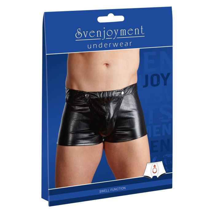 Wanneer je in deze heren slip van kunst leer verschijnt zal het voor je partner direct duidelijk zijn wat jij verlangt. Deze slip van Svenjoyment is namelijk erg verleidelijk door het gladde materiaal en de geheel verwijderbare pouch. In de pouch zit ook nog eens een elastische penisring om jouw lid te doen zwellen, zodat hij direct klaar staat om te knallen!