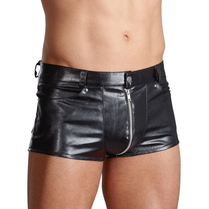Dit short van Svenjoyment heeft een indrukwekkende uitstraling en zal jouw mannelijke delen goed accentueren. In deze short zul je zowel in de slaapkamer als in de club goed scoren. De short is door de lichte stretch kwaliteit nauwsluitend waardoor je vormen goed te zien zijn. Het kunstleer heeft een mooie glans en is luxe afgewerkt met riemlussen en vier zakken. Aan de voorzijde is een gulp met drukknoop aangebracht en de rits loopt helemaal door naar achteren, zodat jij aan alle kant gemakkelijk toegang kunt geven voor een knallend feest!