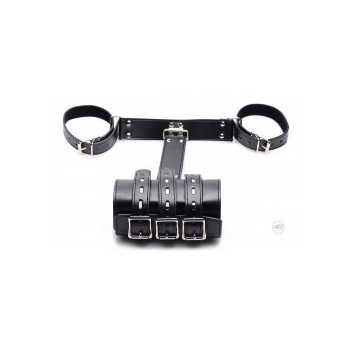 Zet je submissive goed vast met deze kunstleren arm binder zodat jij kan doen en laten wat je wilt met haar. Hij plaats automatisch je armen al naar achteren en vervolgens worden met een hele brede band ook nog eens jouw polsen vastgezet. Om de brede band heen zitten 3 riempjes met vergrendelende gespen waar jij een slot doorheen kan hangen. zo zal je sub gegarandeerd niet los kunnen komen. De banden rond de biceps en polsen zijn volledig verstelbaar voor een perfecte pasvorm op diverse maten. Breng het bdsm spel naar een geheel nieuw level met dit unieke item en bestel vandaag nog om morgen al te kunnen genieten...