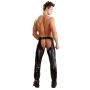 In deze stoere chaps en string van Svenjoyment zul jij zeker een sexy indruk maken in de slaapkamer of op een feest. Deze chaps zijn gemaakt van imitatieleer en zijn licht rekbaar voor een aangename pasvorm. Rond je taille bevestig je de chaps met een riem met grote metalen gesp en langs de pijpen van de chaps zijn risten aan gebracht, zodat ze makkelijk uit kunnen. De bijbehorende imitiatie leren string heeft een comfortabele pouch en staat zeer opwindend in combinatie met de chaps of zonder. Je kunt ook de chaps dragen zonder de string en een echt feestje bouwen. Heeeha!