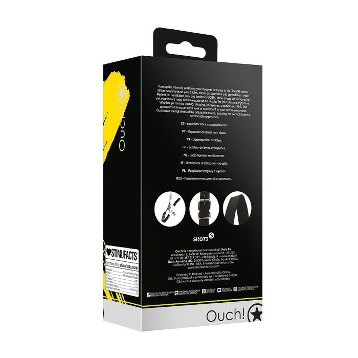 Deze Labia Spreider met klemmen is een handig hulpmiddel voor intieme momenten. De lengte van de band is verstelbaar van 59,5 tot 84 cm, waardoor het geschikt is voor verschillende lichaamstypes. De band heeft 15 gaten, zodat je de spreider kunt aanpassen aan jouw voorkeur. Gemaakt van hoogwaardig materiaal, bestaat de band voor 80% uit PU leer en 20% uit metaal. Met de klemmen kun je de spreider stevig op zijn plaats houden voor een comfortabele en opwindende ervaring.