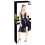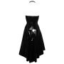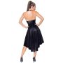 Dit té leuke jurkje is fetish en mode tegelijk! Het is het ideale jurkje om aan te trekken naar een erotisch feestje of voor een spannend avondje samen met je lover. Dit jurkje is geheel gemaakt van zwart lakleer en heeft een sexy halternek. Dankzij de nauwsluitende pasvorm, sexy vetersluiting, en de diepe V-halslijn die de tepels net bedekt krijgt de jurk een mega sexy look. De uitlopende, zwierige rok is aan de voorkant korter en aan de achterkant langer. Aan de achterkant bevindt zich een rits voor het eenvoudig aan- en uitkleden. Het jurkje is gemaakt van 100% polyester, polyurethaan coating.