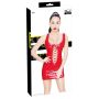 Ontdek het hoogtepunt voor wilde en vurige fantasieën! Deze spannende jurk heeft korte mouwen en is geheel gemaakt van rood lakleer. Dankzij de nauwsluitende en getailleerde pasvorm zullen je vrouwelijke vormen goed benadrukt worden. Daarnaast is zowel de voor- en achterkant extra laag uitgesneden en sexy vetersluiting. Gemaakt van 100% polyester, polyurethaan coating.