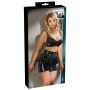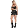 Dit mooie mini rokje heeft een uniek ontwerp en zal jou omtoveren tot een ware vamp fatale. Je draagt de rok hoog in de taille waardoor jouw taille prachtig zal uitkomen. De rok vaklt netjes over je billen heen en heeft als extra een stroken rokje die wijder naar buiten loopt over het strakke jurkje heen. De lak rok sluit met een rits aan de voorkanten is perfect te dragen naar diverse gelegenheden door de nette lengte. Combineer het met een body, blouse of beha en creëer 3 keer een andere look.