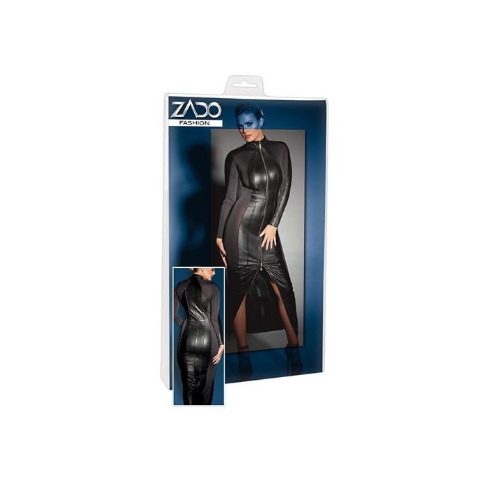 Jij bent in deze jurk stoer vrouwelijk en super sexy! Deze geweldige jurk mag gewoon niet ontbreken in jouw party garderobe. Hij hult jouw gehele lichaam in heerlijk leer gecombineerd met doorzichtig stof aan de zijkanten. De jurk heeft een rits die eindigd net boven de knieen, maar omdat het een twee zip rits is kan jij verleidelijk met de rits spelen. Rits hem sexy omhoog zodat jij je prachtige benen kan laten zien of rits hem geheel naar beneden om alles aan de fantasie over te laten. De jurk is rekbaar zodat hij een perfecte pasvorm zal hebben en zodat de jurk heerlijk om je lichaam heen zal sluiten. Combineer deze schitterende jurk met een paar prachtige pumps en ga de avond in als een ware vamp fatale.