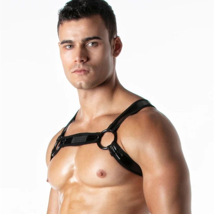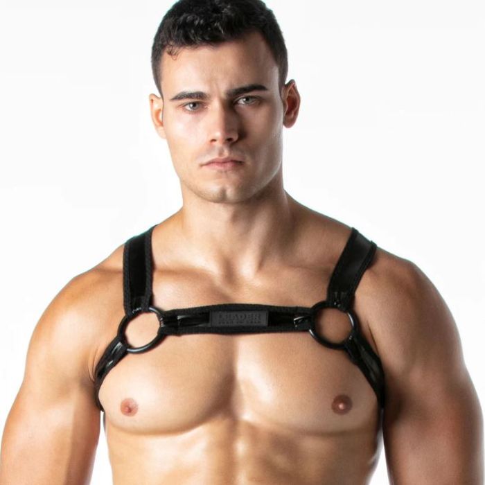 Deze stretchy lederen harnas met sportieve mesh stof piping detail biedt niet alleen een comfortabele pasvorm, maar ook een krachtige fetisj uitstraling. Het harnas is gemaakt van hoogwaardig leerachtig materiaal dat meebeweegt met het lichaam, waardoor het perfect is voor langdurig gebruik. De sportieve mesh stof piping detail voegt een vleugje stijl toe aan het harnas en zorgt voor een ademend gevoel tijdens het dragen. Het harnas is voorzien van siliconen ringen, waardoor het compatibel is met verschillende accessoires en speeltjes. Deze veelzijdigheid maakt het harnas geschikt voor zowel beginners als ervaren gebruikers. Daarnaast is er een discrete LEADER merklabel op de borstband geplaatst, wat een vleugje exclusiviteit en kwaliteit toevoegt aan het ontwerp. Of je nu op zoek bent naar een harnas voor een spannend avontuur in de slaapkamer of gewoon wilt pronken met je fetisjstijl, dit stretchy lederen harnas met sportieve mesh stof piping detail is de perfecte keuze. Het combineert comfort, duurzaamheid en een verleidelijke uitstraling in één product. Voel je zelfverzekerd en sexy met dit harnas van LEADER.