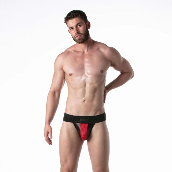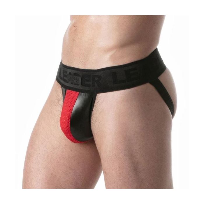 Deze stretchy jockstrap is perfect voor degenen die op zoek zijn naar een ondergoed met een sterke fetisj uitstraling. Het heeft een uniek ontwerp dat zowel comfortabel als opwindend is. De jockstrap is gemaakt van hoogwaardig elastisch materiaal dat zich aanpast aan de vorm van je lichaam, waardoor het de hele dag door comfortabel blijft zitten. De jockstrap heeft een extra brede tailleband van 60 mm, gemaakt van jacquard elastiek van hoge kwaliteit. Deze brede tailleband zorgt niet alleen voor een stevige pasvorm, maar geeft ook een stoere uitstraling aan het ondergoed. De pouch van de jockstrap is gemaakt van elastisch leerachtig materiaal en sportief mesh, wat zorgt voor een opvallende en verleidelijke look. Bovendien is de jockstrap voorzien van een silicone LEADER merklabel op de tailleband, wat een extra vleugje stijl toevoegt aan het geheel. Met deze jockstrap ben je verzekerd van een comfortabele pasvorm en een onweerstaanbare uitstraling.