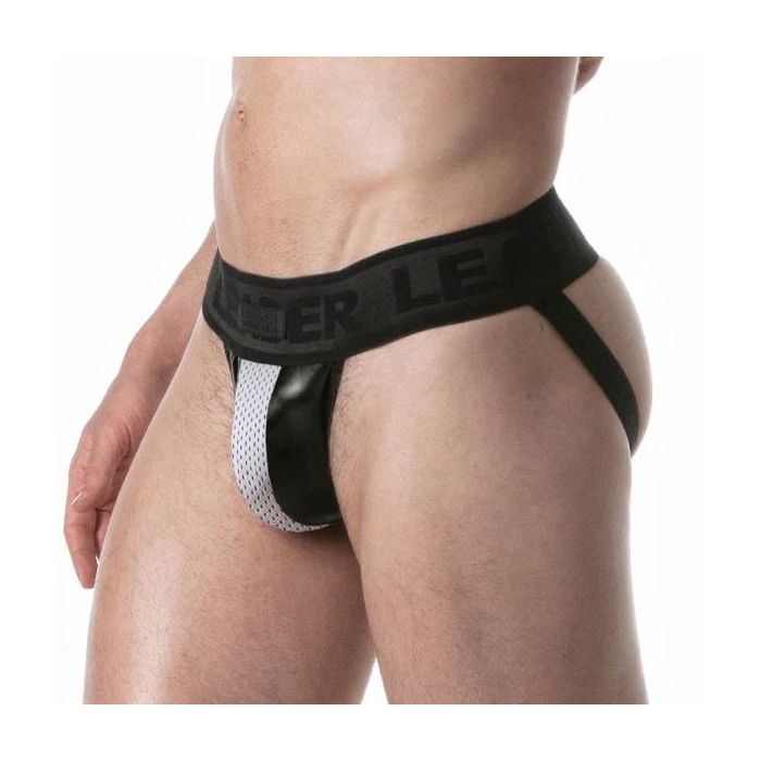 Wat deze jockstrap echt uniek maakt, zijn de elastische leren en sportieve mesh panelen in het kruis. Deze innovatieve combinatie zorgt niet alleen voor een gedurfde uitstraling, maar ook voor uitstekende ventilatie, zodat je je de hele dag fris en comfortabel voelt. Het silicone LEADER merklabel op de tailleband voegt een extra vleugje luxe toe, waardoor je niet alleen goed gekleed bent, maar ook zelfverzekerd.
