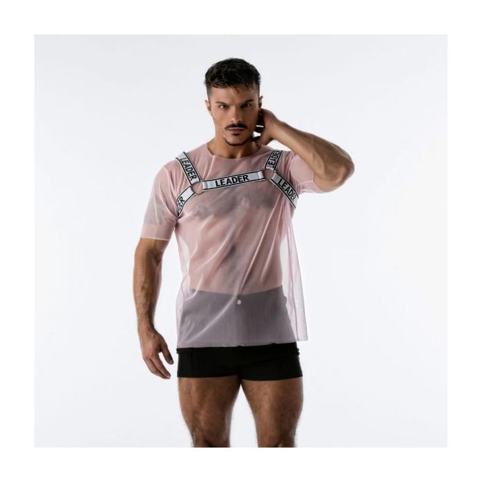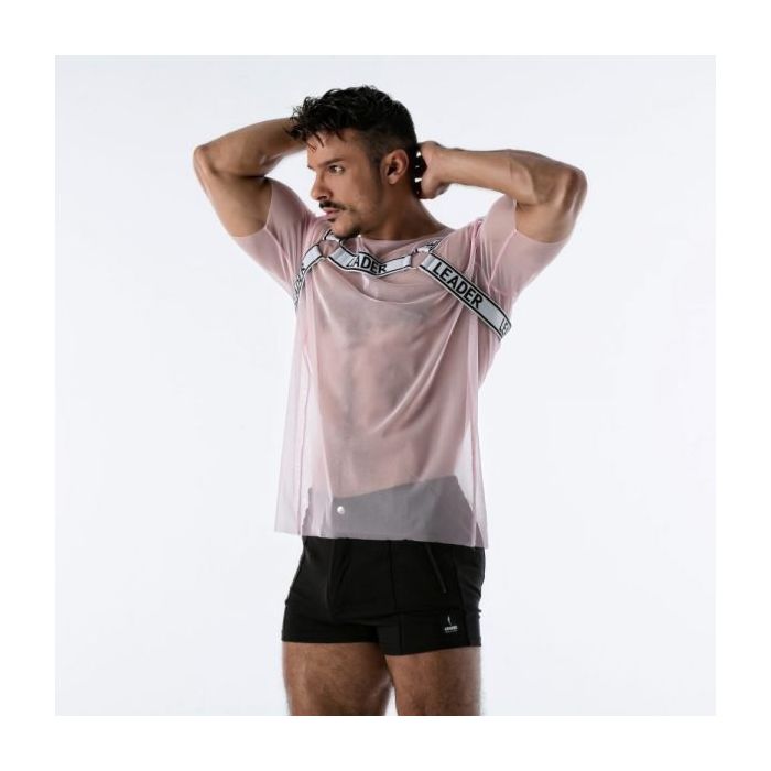 Get ready to party in het limited edition Leader Mesh Harnas T-Shirt - Roze. Jouw gespierde torso komt pas echt tot zijn recht in een T-shirt van doorschijnend mesh met een aangehecht harnas. Het micro mesh houdt niets verborgen en het harnas van elastische banden en metalen ringen laat jouw schouders er extra breed uitzien.