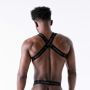 Het harnas heeft op de borst een H-model en op de rug een X-model voor een comfortabele pasvorm en geaccentueerde schouders. Aan de voorkant is een metalen D-ring aangebracht voor een extra kinky look.