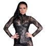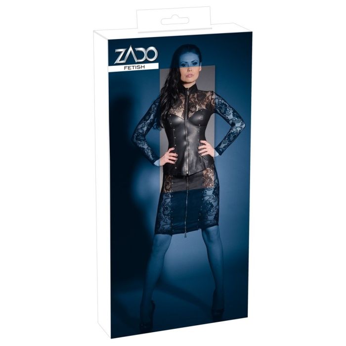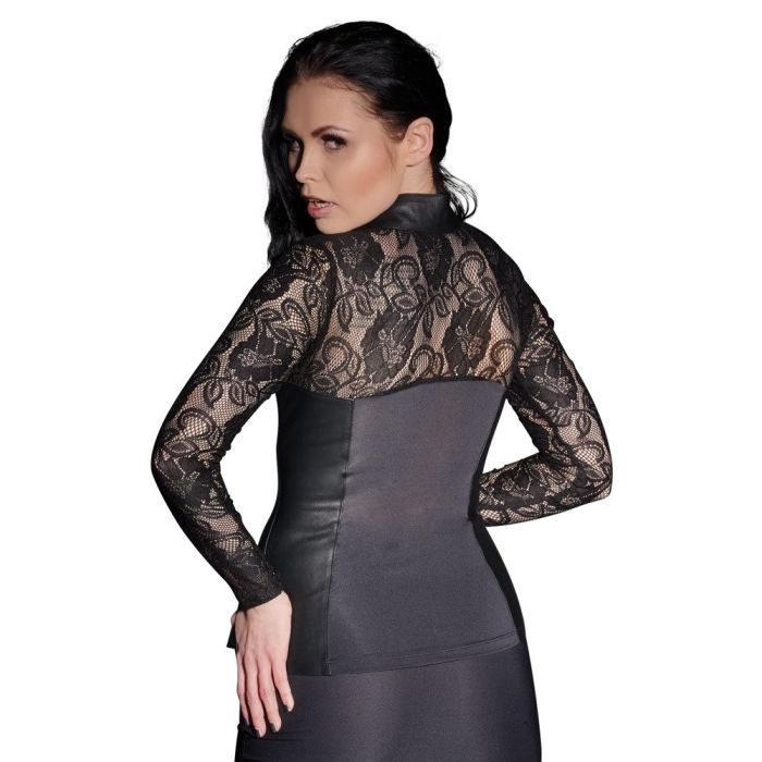 Dit schitterende jasje heeft zoveel details dat jij hem voor vrijwel elke gelegenheid kan aantrekken. Het zwart leren jasje met kanten detail en studs is vrouwelijk stoer en elegant tegelijk. Vanaf de borsten tot aan beneden is het jasje van prachtig mooi leer met van boven naar beneden kleine studs voor een stoere look. De armen en het hals gedeelte is gemaakt van mooi stretchy kant dat zeer rekbaar is. Hierdoor oogt het jasje ook lief. Hij sluit hoog in de hals met een rits en om de hals heen is de jas ook van leer. Draag dit item met een goede jeans of draag hem in de club met een kort rokje. Ook wanneer jij meesteres bent doet dit jasje het perfect. Straal vrouwelijkheid, kinky of elegant met dit geweldige jasje en maak je partner wild.