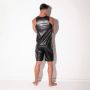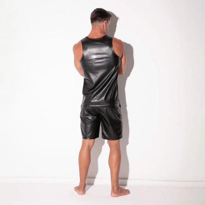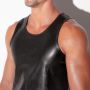Gemaakt van stretch leatherette, biedt deze tanktop een strakke, body-hugging fit die je figuur prachtig accentueert. De klassieke ronde halslijn en de schone afwerking zorgen voor een tijdloze uitstraling die zowel casual als chic kan zijn.