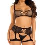 Leg Avenue 2-delige Fishnet Lingerie Jarretel Set - Zwart
