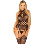 Leg Avenue Halternek Bodystocking met Jarretel - Zwart