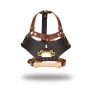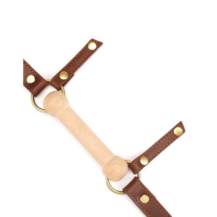 Dit handgemaakte Blinders met Mondknevel van het merk Liebe Seele is gemaakt van echt rundleer in twee kleuren en texturen. Het is gevoerd met lamsleer en heeft een afneembare houten mondknevel. Het is verfraaid met The Equestrian kenmerkende accenten in het goud. De blinder is verstelbaar met een bereik tussen 55,5 en 66,5 cm en de mondknevel is verstelbaar met een bereik tussen 45 cm en 58 cm. Dit product is van hoge kwaliteit en perfect voor liefhebbers van BDSM.