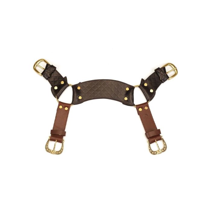 Dit borstharnas van Liebe Seele is een hoogwaardig product gemaakt van echt rundleer met twee verschillende kleuren en texturen. Het is niet alleen stijlvol, maar ook duurzaam. Het harnas is gevoerd met zacht lamsleer voor extra comfort tijdens het dragen. Daarnaast is het harnas verfraaid met The Equestrian kenmerkende accenten in het goud, wat een luxe uitstraling geeft. Met dit borstharnas ben je niet alleen goed beschermd, maar zie je er ook nog eens modieus uit.
