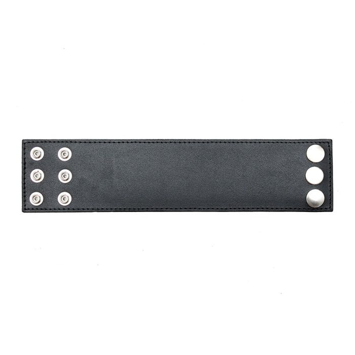Deze polsband is gemaakt van hoogwaardig leer, wat zorgt voor een duurzame en luxe uitstraling. De kleur van de polsband is zwart, wat hem een stoere en mysterieuze look geeft. Met een breedte van 6 cm en een lengte van 26 cm past deze polsband om de meeste polsen. De polsband is voorzien van 3 drukknopen, waardoor je hem gemakkelijk kunt verstellen naar de gewenste maat.