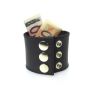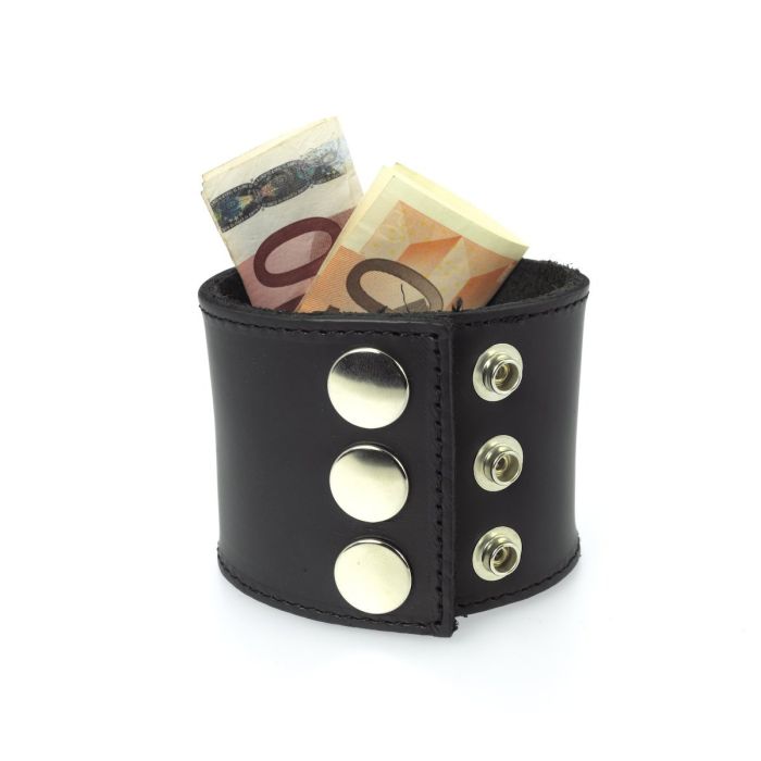 Deze leren polsband met geldvak van Rimba is de perfecte accessoire voor een kinky feestje of een andere gelegenheid waar je een stoere en stylish look wilt creëren. Naast het feit dat deze polsband er geweldig uitziet, is hij ook nog eens erg praktisch. Je kunt er gemakkelijk geld, pasjes en andere kleine spullen in kwijt. Het geldvak heeft geen vervelende rits of irriterende naden, maar sluit naadloos aan op de huid, waardoor er niets uit kan vallen. De drukknopen zijn stevig en verstelbaar, zodat je de polsband perfect kunt laten passen.