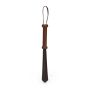 De spanking slapper van Liebe Seele is een hoogwaardig product gemaakt van echt rundleer en een stevig houten handvat. Het handvat is omwikkeld met hand gevlochten leer voor extra grip en comfort. De slapper heeft vier dubbel gelaagde leren planken, waardoor het een effectieve en pijnlijke impact heeft. Met een totale lengte van 53.5 cm is het een perfecte maat voor zowel beginners als ervaren gebruikers. Het handvat van de slapper is 17 cm lang en de polsband heeft een diameter van 13 cm, waardoor het gemakkelijk te hanteren is tijdens gebruik.