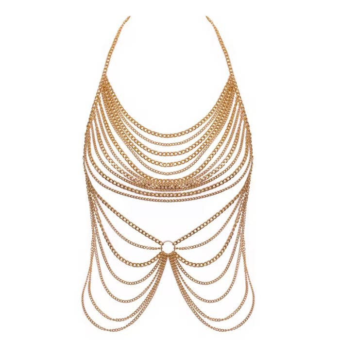 Of je nu kiest voor een sensuele lingerie-look of deze prachtige bodyketting combineert met je favoriete badmode of strakke outfits, je zult zeker de aandacht trekken. Deze glamoureuze lichaamssieraden zijn veelzijdig en perfect voor elke gelegenheid, van een romantische avond tot een dagje aan het strand.