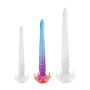 De Lichtgevende Monster Dildo Tak-Tak Medium is een unieke en kleurrijke dildo in een betoverende tentakelvorm die je zintuigen zal prikkelen. Met een indrukwekkende inbrenglengte van 45 cm en een breedte die varieert van 2 tot 6 cm, biedt deze dildo een spannende en veelzijdige ervaring voor elke avontuurlijke geest. Het lichtgevende effect zorgt ervoor dat je deze bijzondere dildo in het donker kunt laten stralen, wat een extra dimensie toevoegt aan je speelse momenten. De stevige zuignapvoet maakt het mogelijk om de dildo op vrijwel elke gladde ondergrond te bevestigen, zodat je je handen vrij hebt voor nog meer plezier. Gemaakt van hoogwaardig siliconen, is deze dildo niet alleen veilig en huidvriendelijk, maar ook gemakkelijk schoon te maken en te onderhouden. Laat je fantasie de vrije loop en voeg een vleugje magie toe aan je collectie met de Lichtgevende Monster Dildo Tak-Tak Medium!