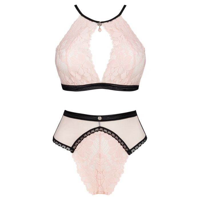 Elegant en verfijnd! Ontdek dit fantastische setje en bekijk de wereld door een roze bril. Dit setje bestaat uit een zachte bh & bijpassende string. De kleur van de set is roze en heeft contrasterende zwarte details. Zowel de bh als de string zijn gemaakt van zachte stoffen, delicaat kant en zijn elastisch waardoor het draagcomfort erg hoog is. Daarnaast heeft de bh een mooi decoratief element in het midden en zijn alle bandjes volledig verstelbaar zodat jij dé perfecte pasvorm hebt. De bijpassende string scoort met zijn hoge taille, die de benen, heupen en billen spannend benadrukt.
