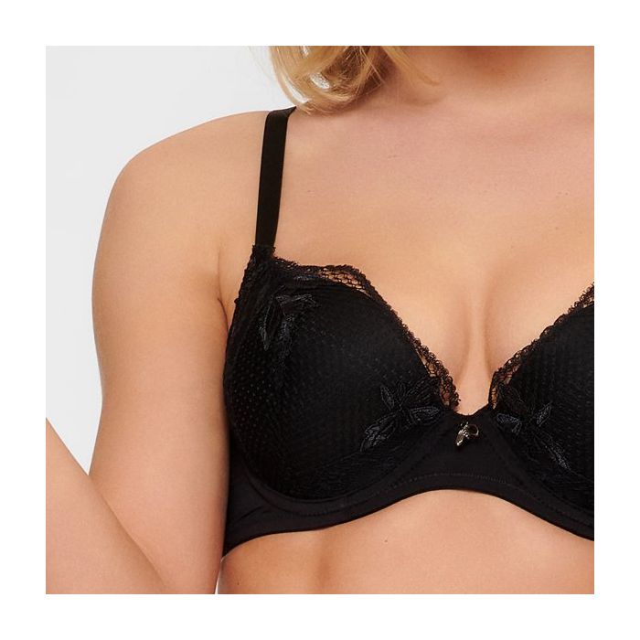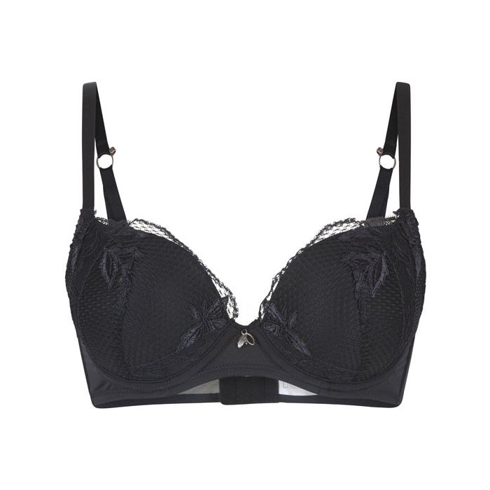De vrouwelijke Black Flower Push Up BH komt uit de Black Flower serie van LingaDore. De bh is gemaakt van materialen van hoge kwaliteit voor een comfortabele pasvorm die perfect aansluit. De voorgevormde beugel cups hebben een zachte, gel vulling voor een prachtig push up resultaat. Tussen de cups is een zilverkleurig hangertje aangebracht.