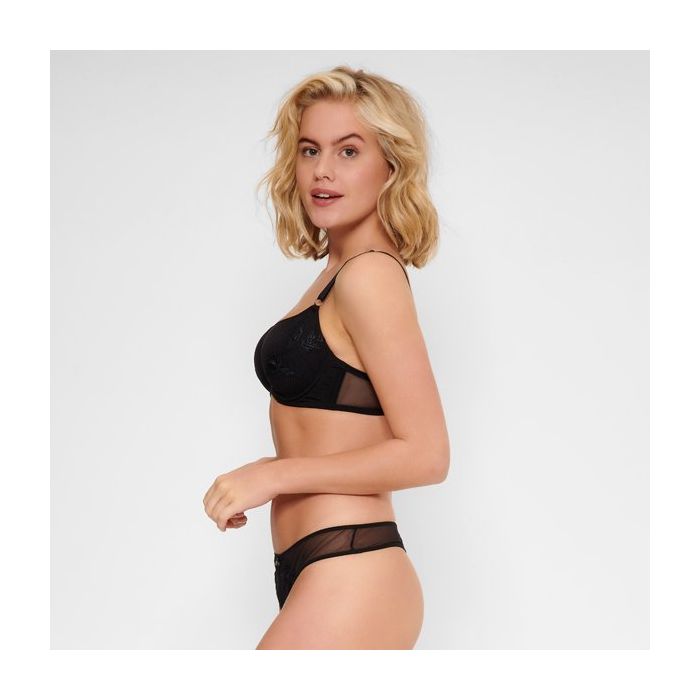 Combineer de elegante Black Flower Uni Fit BH met de bijpassende string of Brazilian slip voor een complete vrouwelijke lingerie set!