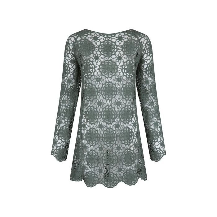 De LingaDore Bohemian Chic Beach Tuniek - Army Green is een boho chic strand jurkje. Het gehaakte tuniek met bloem patroon heeft een trendy macramé look.