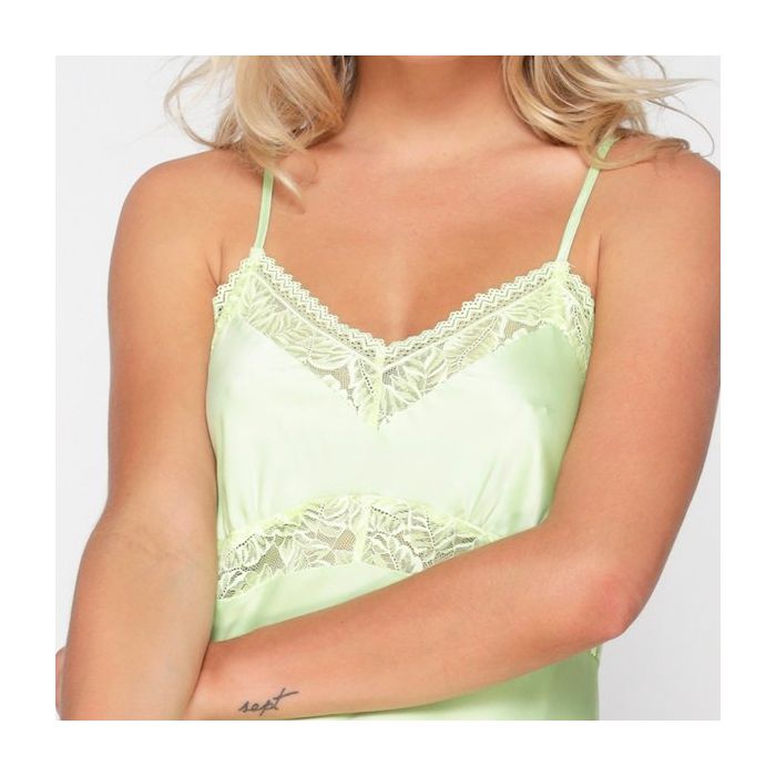 Ga voor een frisse lente look met de LingaDore Butterfly Chemise - Groen! Deze appeltjes groen gekleurde chemise is gemaakt van glanzend satijn dat heerlijk glad aanvoelt. Het vrolijke nachtjurkje is afgewerkt met prachtig kant met een betoveredn bladmotief.