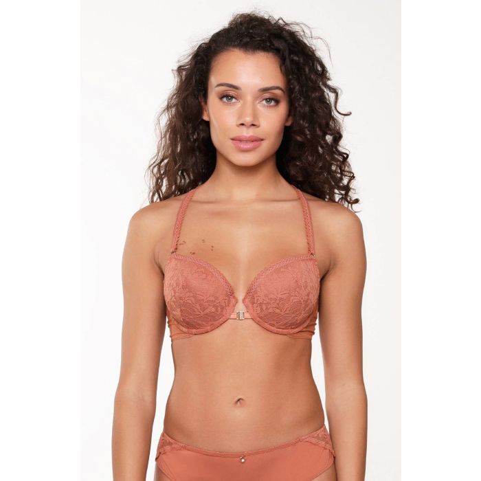 Ga dit najaar voor een geweldige kleur, namelijk ginger bread! Deze kleur is een echte essential voor je herfstcollectie en verleiden zal als nature met het dragen van deze prachtige bh! De kanten afwerking in combinatie met de goede pasvorm maakt deze bh perfect voor iedere vrouw. De gel bh is op de cups afgewerkt met embroidery en daarnaast zijn de cups ook bedekt met mesh. De schouderbandjes zijn verstelbaar en de bh geeft een natuurlijk push-up effect.