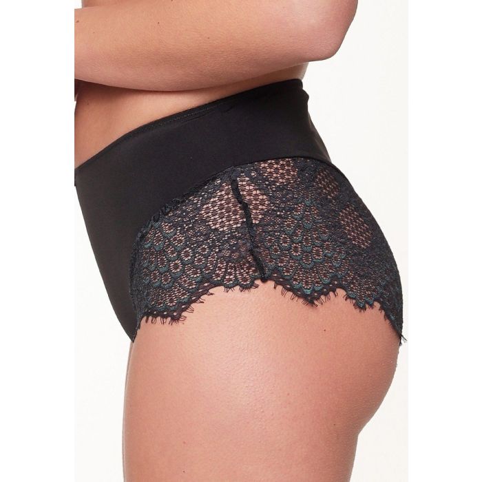 DeLingaDore Taille Slip Peacock is een geweldige aanvulling op je spannende lingerie collectie. De taille slip heeft kanten accenten waardoor de slip een speelse uitstraling krijgt. Het zwarte kant komt mooi naar voren door de zwarte ondergrond. Combineer deze spannende hipster samen met de bijpassende beha voor een geweldige lingerie look.