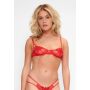 Met het dragen van deze uitdagende beugel bh zal je partner zeker zijn ogen volledig op jou richten! Deze beugel bh is voorzien van ondersteunende beugels en is semi-transparant voor een mega sexy resultaat. Het semi-transparante rode mesh is doorweven met een vlinder als decoratiestuk voor een prachtige aanblik op de buste. Daarnaast heeft deze beugel bh ook verstelbare schouderbandjes en een dubbelde haaksluiting, zodat de bh goed aansluit bij jouw rondingen. Combineer deze bh met de bijpassende string voor een extra verleidelijke en pikante look!